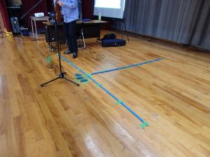 11月12日(水)魂のヴァイオリニスト 白井崇陽 さんをお迎えしました。白井さんは目が不自由です。ステージ上にホースをT字状に張り付け、ご自分の位置を把握されていました。曲は「耳コピ」したり、「点字楽譜」で練習するそうです。